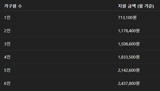 2024년 기준 생계지원 금액은 다음과 같습니다.