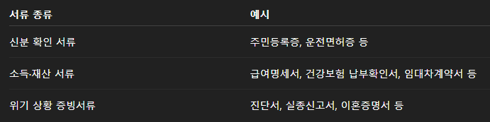 가정폭력이나 성폭력 등으로 생계를 유지하기 어려워진 경우가 해당됩니다.