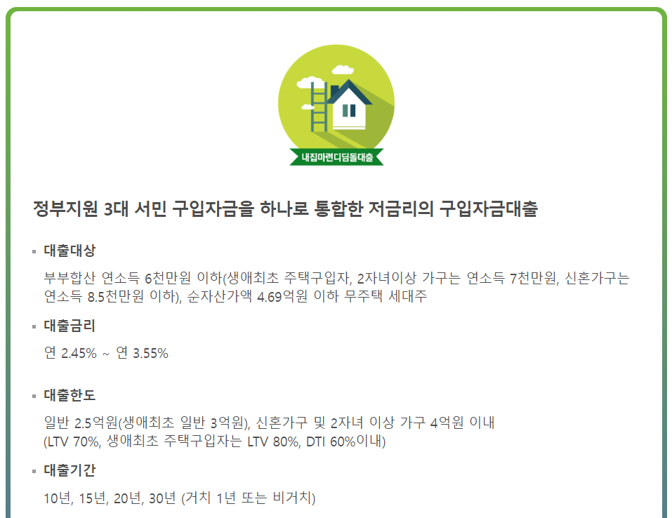 내집마련 디딤돌대출의 특징