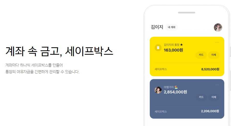 카카오뱅크 세이프박스는 여유 자금을 안전하게 보관할 수 있는 금고입니다. 계좌마다 하나씩 세이프박스를 생성하여 최대 1억 원까지 보관할 수 있습니다.