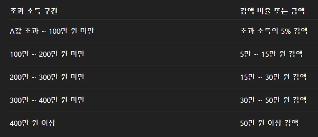 감액률은 초과 소득이 얼마인지에 따라 차등 적용됩니다.