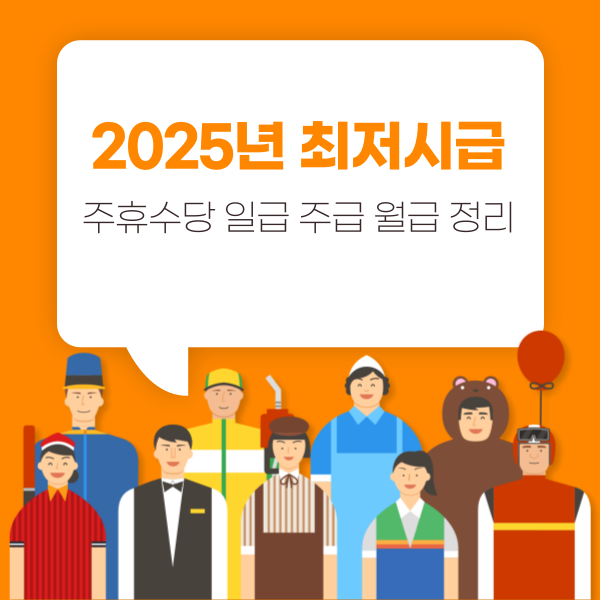 2025년 최저시급 및 주휴수당 일급 주급 월급 정리